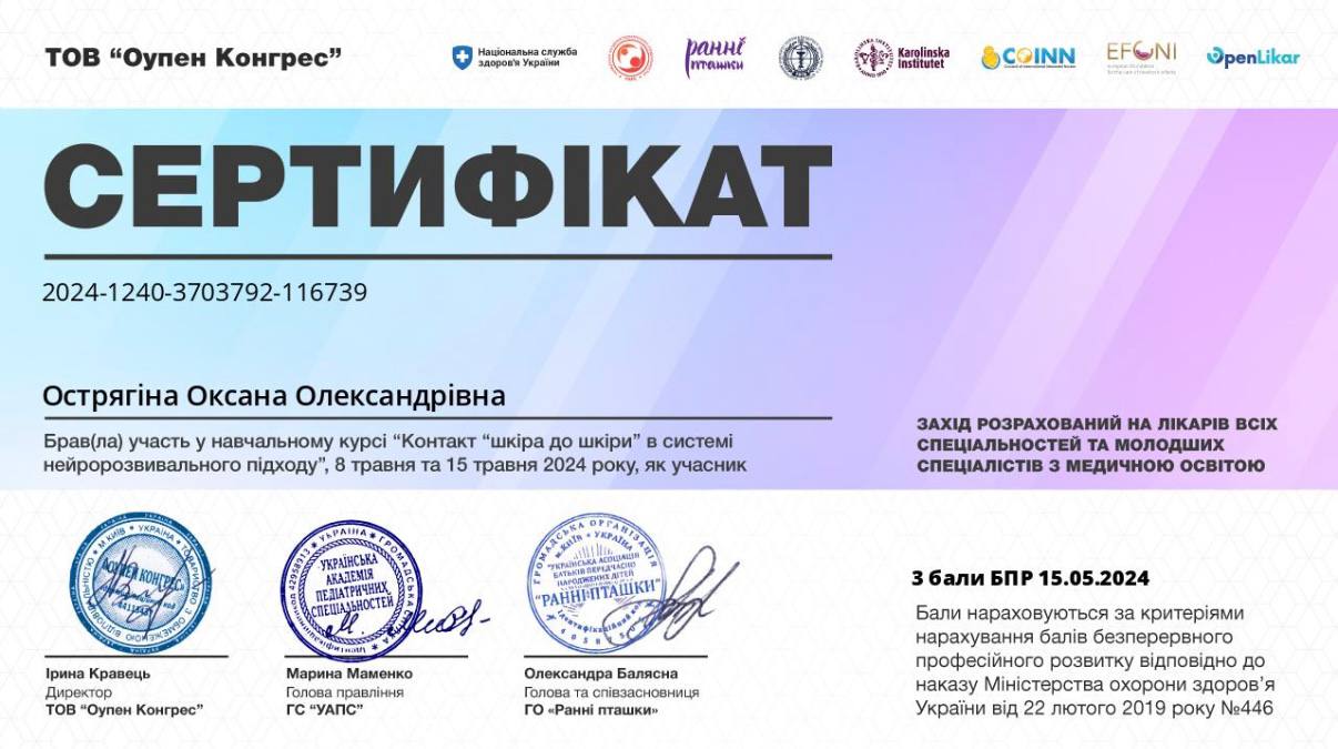2025 — специализация «Детская гинекология», Учебно-научный медицинский институт НТУ «ХПИ».
