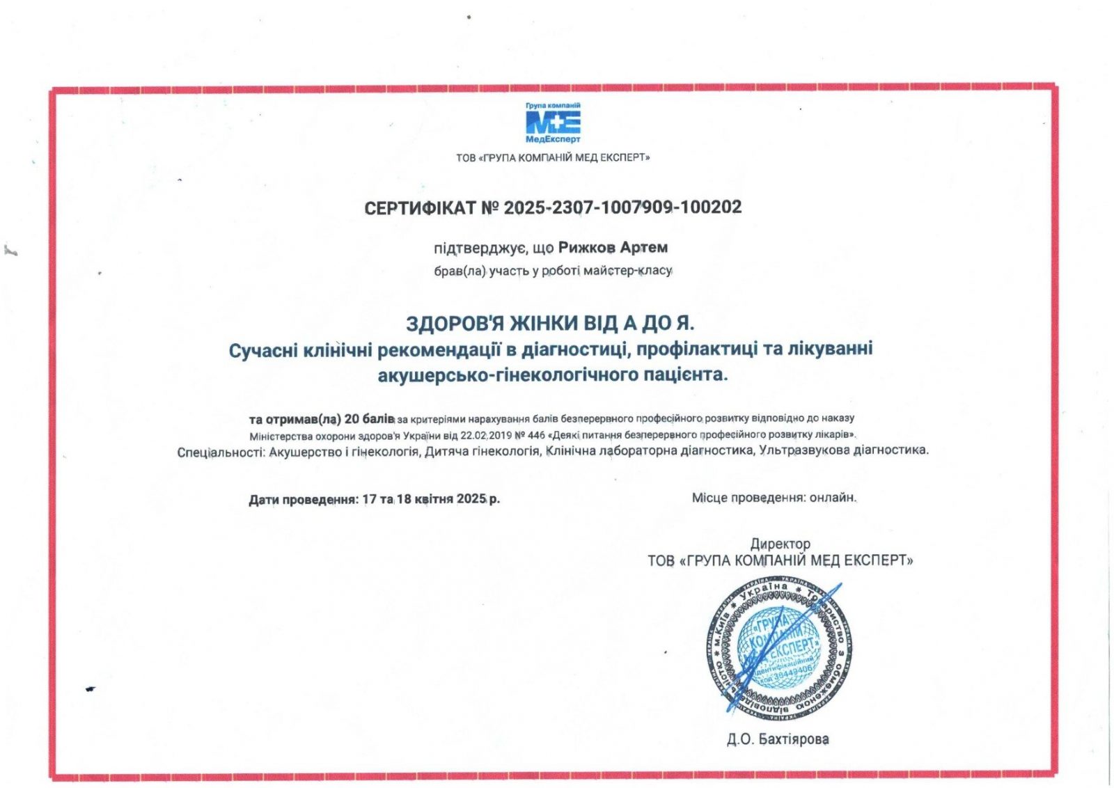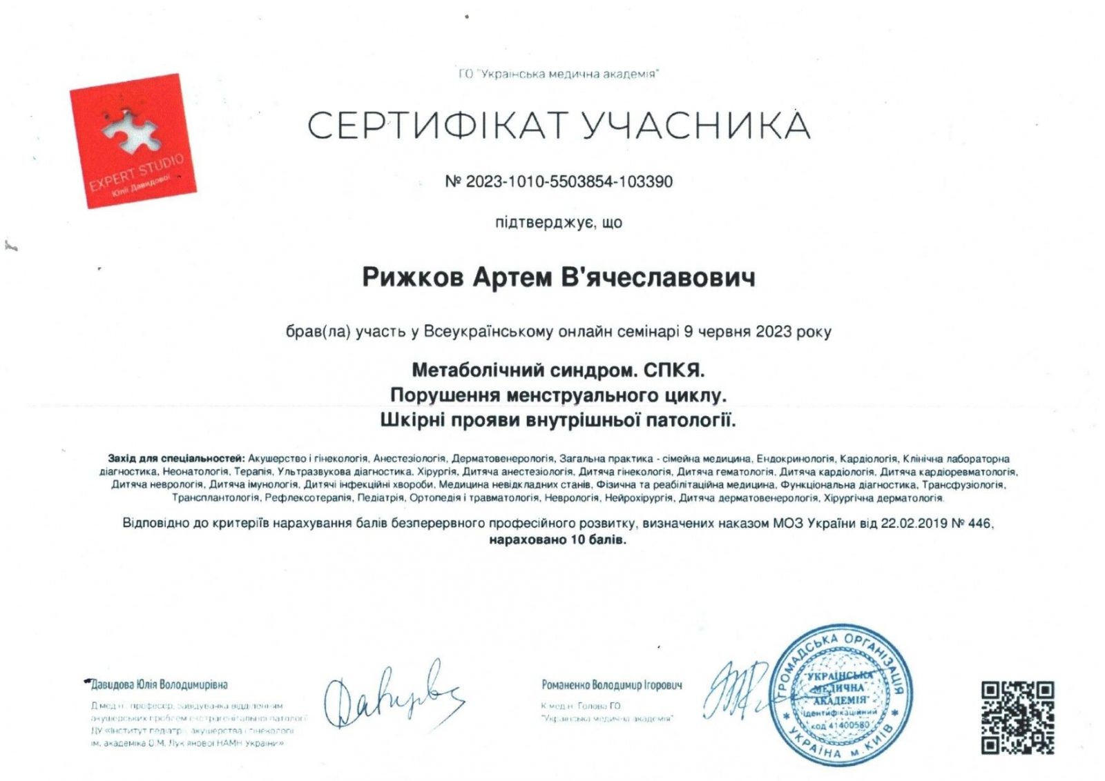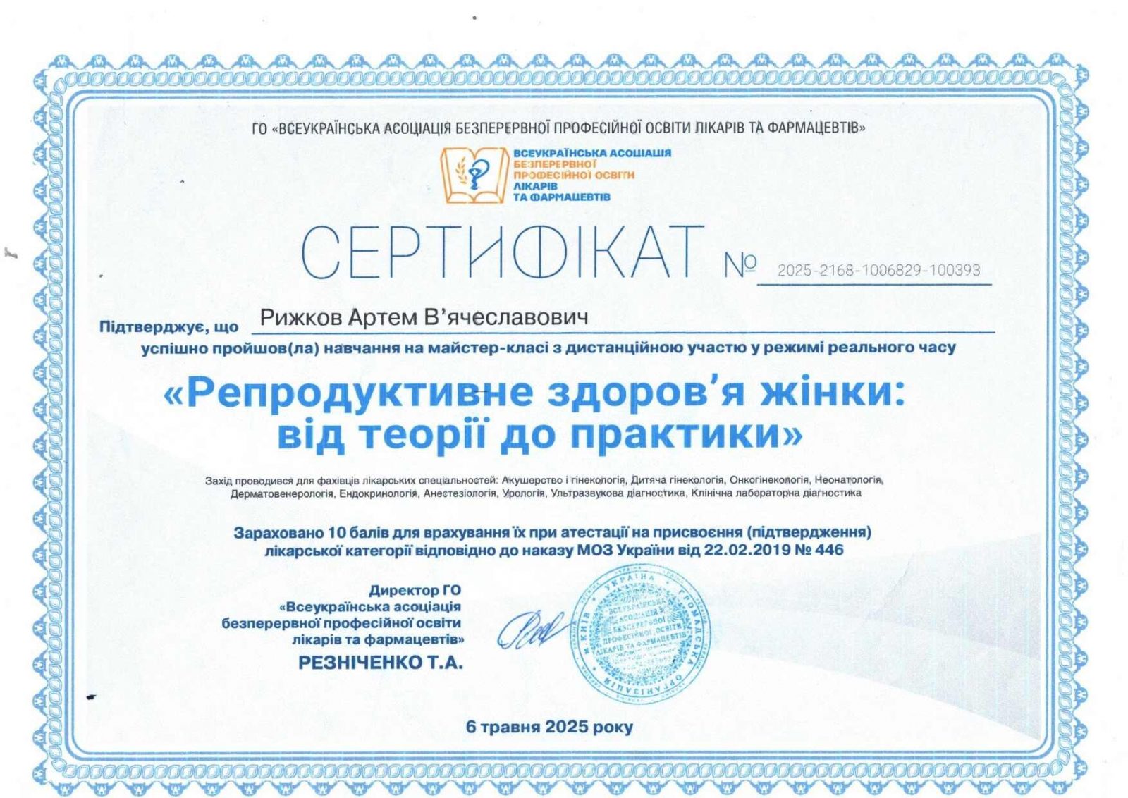 - Член ассоциации акушеров-гинекологов Украины
