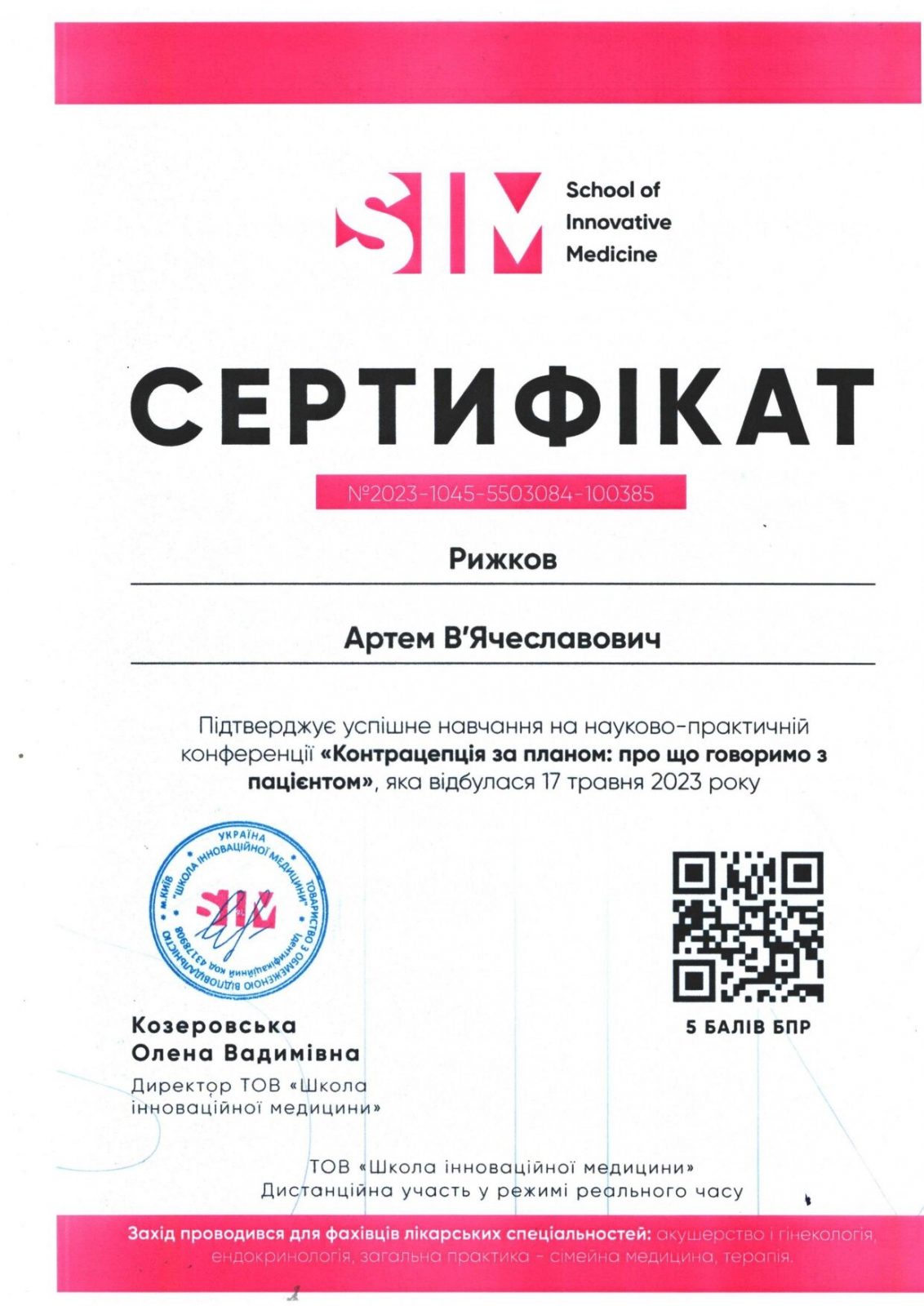 В 2017 году прошел курс повышения квалификации «Лапароскопия в гинекологии».