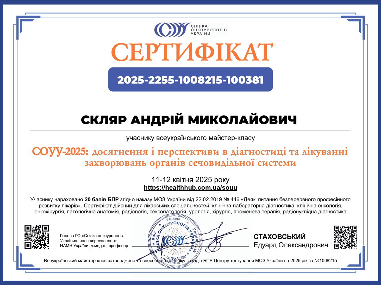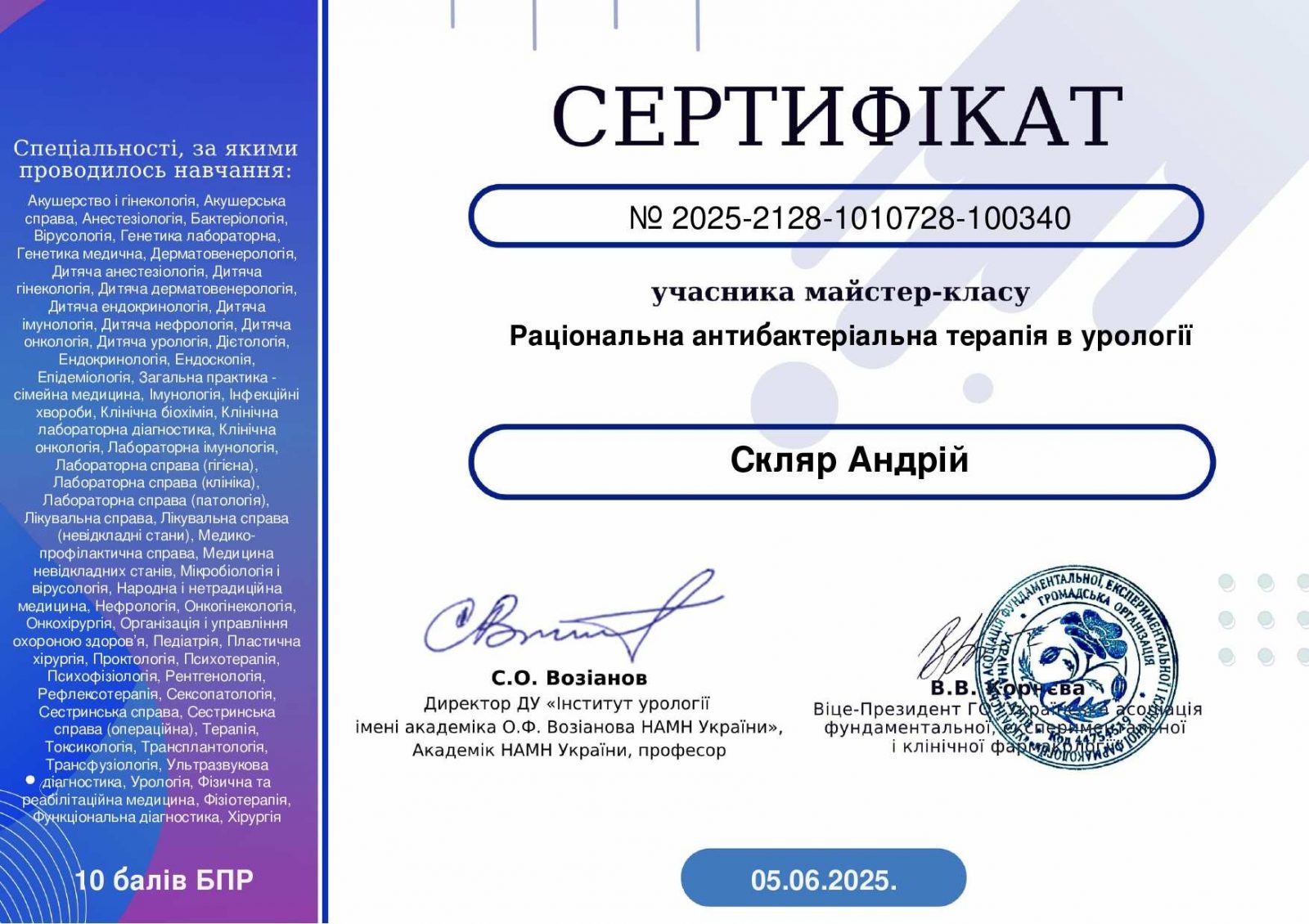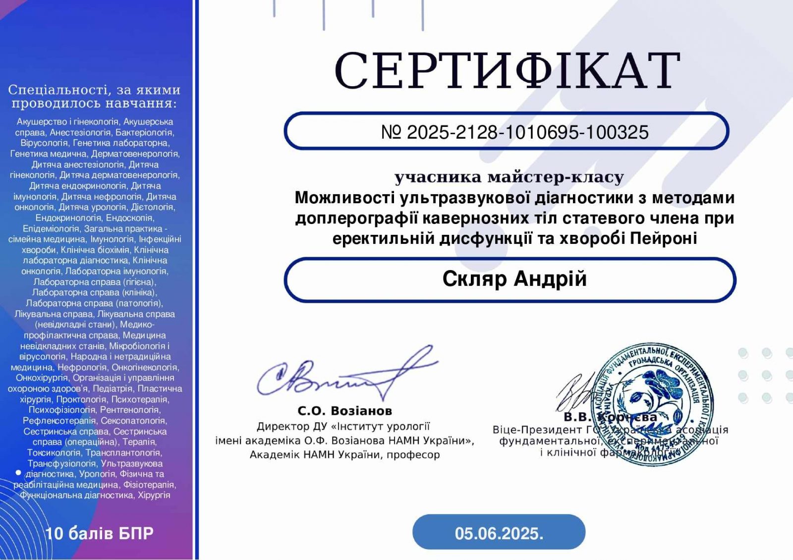 Читать отзывЗавдяки урологу Скляр Андрію Миколайовичу операція Мармара пройшла легко й успішно. З першої консультації я зрозумів, що лікарю можна довіряти. Велике дякую!