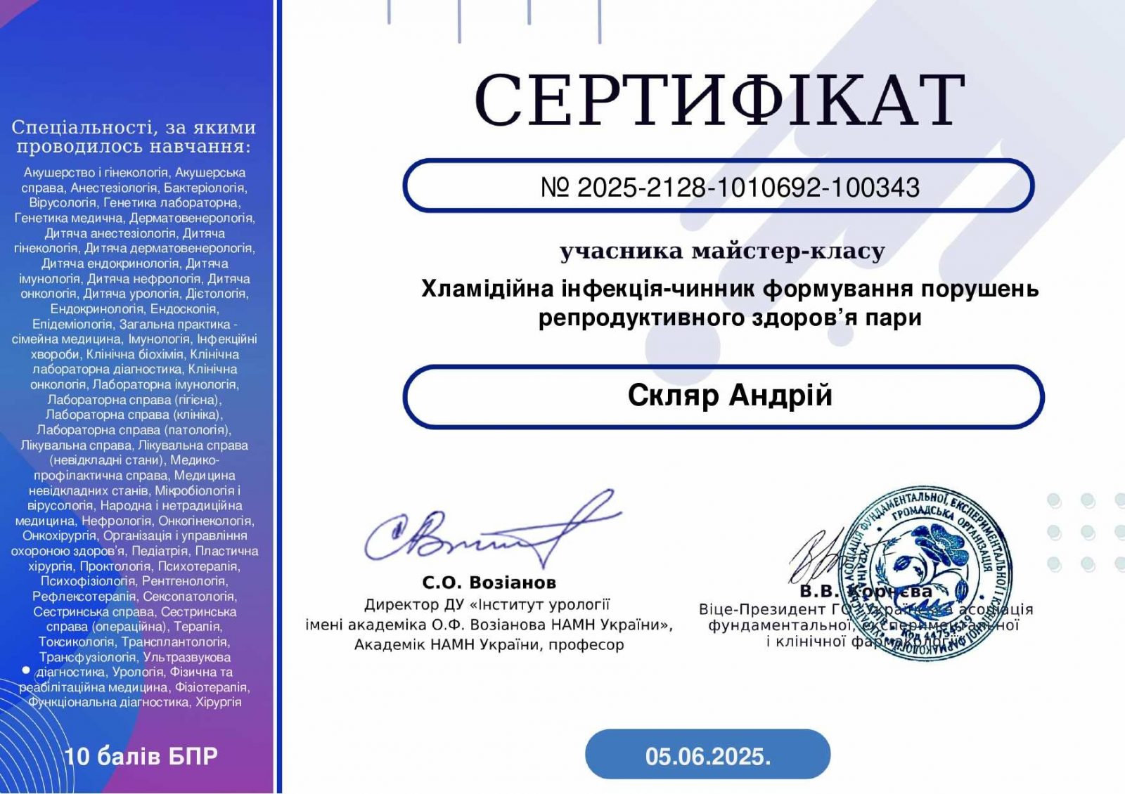 Читать отзывДякую Скляр Андрію Миколайовичу за успішне лікування простатиту. Якість життя значно покращилася!