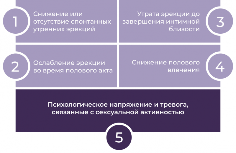 Основной признак — невозможность достичь или удерживать эрекцию, достаточную для завершения полового акта. Важно обращать внимание на сопутствующие изменения, так как они помогают понять природу проблемы.