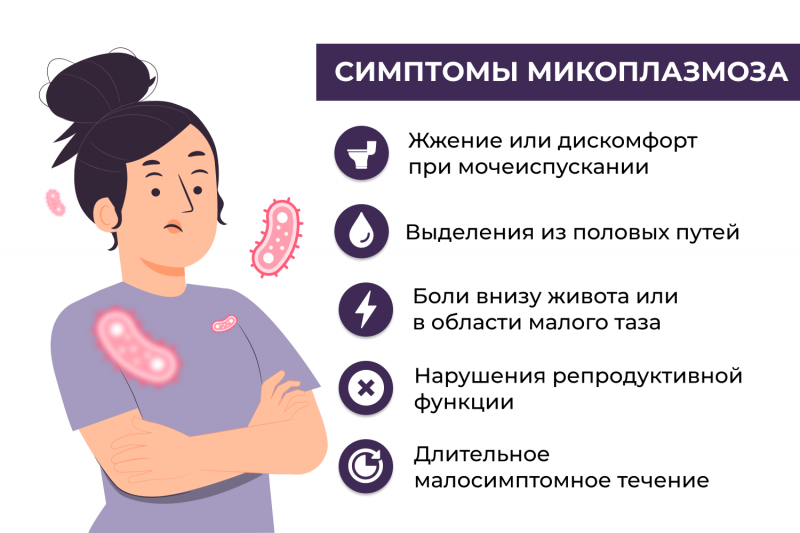 Микоплазмы могут поражать мочеполовую систему, дыхательные пути, реже — суставы и другие ткани. У многих людей они живут в организме без симптомов, но при определенных условиях становятся причиной воспалительных процессов.